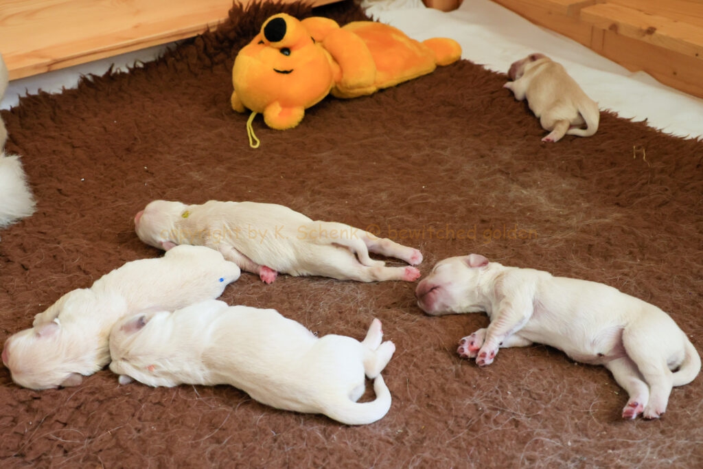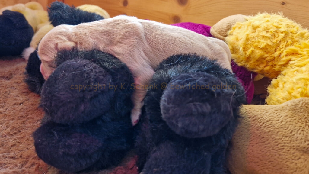 … sind immer diejenigen, an denen wir staunend vor der Wurfkiste sitzen und beobachten, zu welchen Wundern die Natur fähig ist. Die kleinen D-chen finden schon selbstständig Mamas Zitzen und saugen sich zuverlässig daran fest. Noch gibt es nur wenig Unmut beim Andocken an die Milchbar, alle finden irgendwann ein Plätzchen.