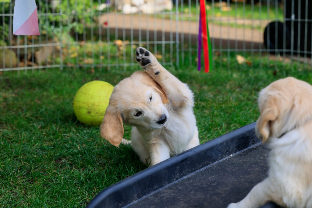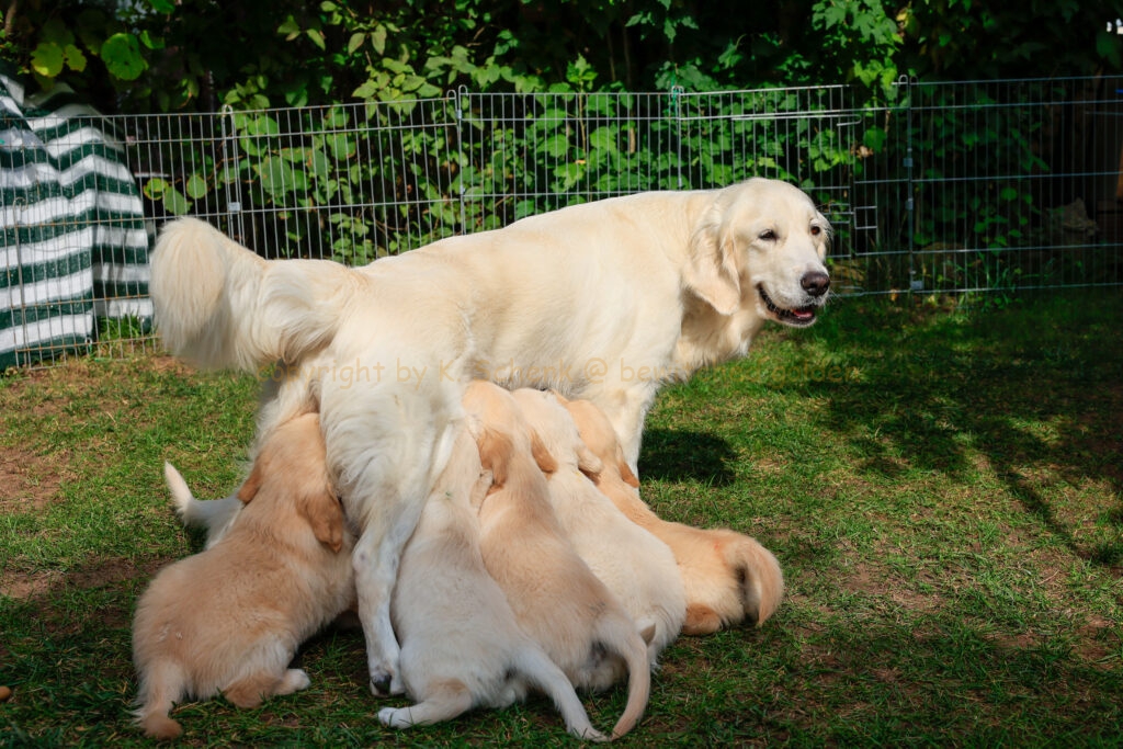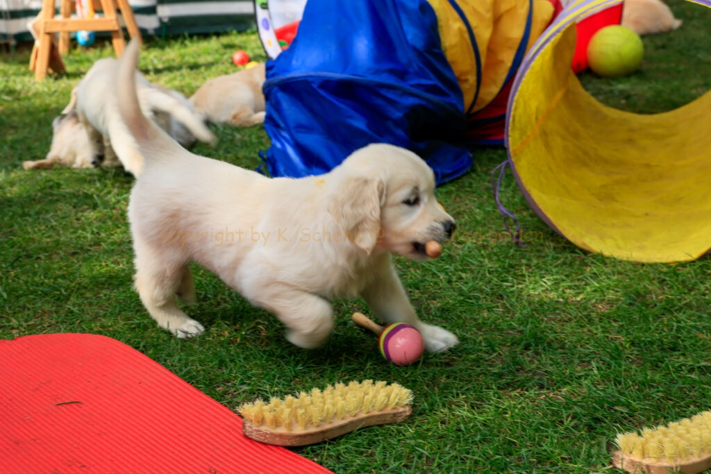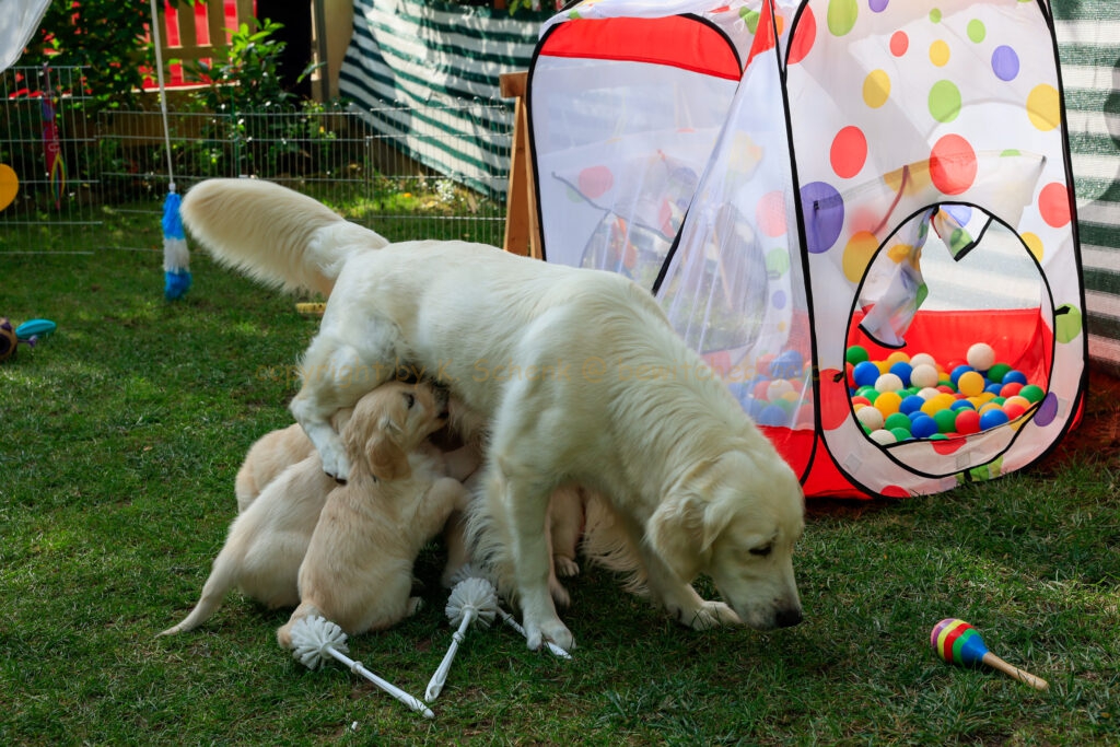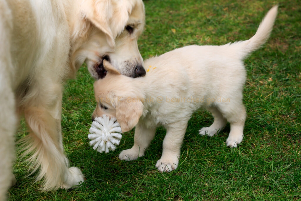 Molly spielt gerne mit ihren Kindern – die Klobürste war schon in ihrer Welpenzeit ihr Lieblingsspielzeug, also ist es kein Wunder, dass sie da natürlich voll ins Spiel einsteigt, wenn eines ihrer Kinder damit ankommt. 🙂